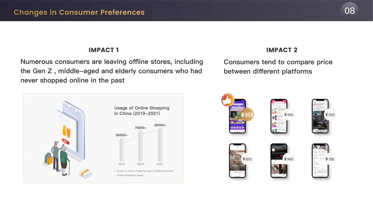 人們消費(fèi)方式的變化給運(yùn)營商帶來了巨大沖擊,包括大量消費(fèi)者離開線下門店,對商品價(jià)格更加敏感等。