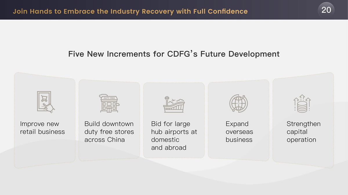 他表示中免集團(tuán)未來將持續(xù)完善和強(qiáng)化新零售業(yè)務(wù),繼續(xù)開展國內(nèi)的市內(nèi)免稅店建設(shè)。"以新建成的28萬平方米體量??趪H免稅城為代表的大型市內(nèi)免稅店,將是我們未來除機(jī)場、口岸業(yè)務(wù)外重要的業(yè)務(wù)增長點(diǎn)。"此外,中免集團(tuán)不會(huì)停止海內(nèi)外大型樞紐機(jī)場的投標(biāo)腳步,并將在母公司中國旅游集團(tuán)的領(lǐng)導(dǎo)下,不斷拓展海外業(yè)務(wù)。作為同時(shí)在A+H股市場擁有融資能力的上市公司,中免集團(tuán)也希望與合作伙伴開展更為廣泛的資本合作,共同深耕中國以及全球市場。
