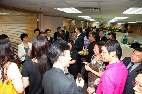 2010年6月18日下午,香港九龍尖沙咀東的東海商業(yè)中心七層電梯口,數(shù)十只依次擺放的花籃,用濃郁的芬芳,迎接著陸續(xù)趕來(lái)祝賀的賓客。香港中國(guó)免稅品有限公司喬遷新址慶祝酒會(huì)在一片祝福聲中開幕。中央政府駐香港特區(qū)聯(lián)絡(luò)辦公室,外交部香港特派員公署,中國(guó)免稅品(集團(tuán))有限責(zé)任公司總裁盧路、副總裁趙鳳等領(lǐng)導(dǎo)和二十多家供應(yīng)商代表近六十人出席了酒會(huì)。