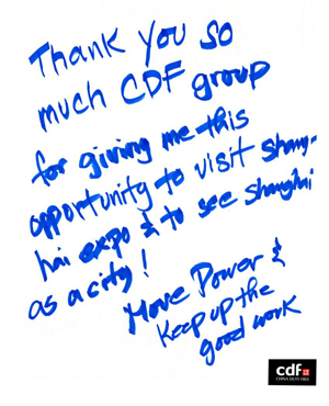“我家是在菲律賓,每年都會(huì)來(lái)一次廈門,每次都在免稅店買些東西。這次從廈門機(jī)場(chǎng)準(zhǔn)備返程的時(shí)候在免稅店買兩瓶酒還有施華洛世奇飾品準(zhǔn)備送我太太,結(jié)賬的時(shí)候店員介紹我填寫(xiě)抽獎(jiǎng)卡片,說(shuō)有機(jī)會(huì)可以中獎(jiǎng)免費(fèi)游世博會(huì),沒(méi)想到真的中獎(jiǎng)了。當(dāng)接到中獎(jiǎng)通知電話的時(shí)候感覺(jué)很是不可思議,很懷疑‘是真的嗎?’但是當(dāng)中獎(jiǎng)資料文件和世博門票郵寄給我的時(shí)候我才相信這是真的呵呵。”