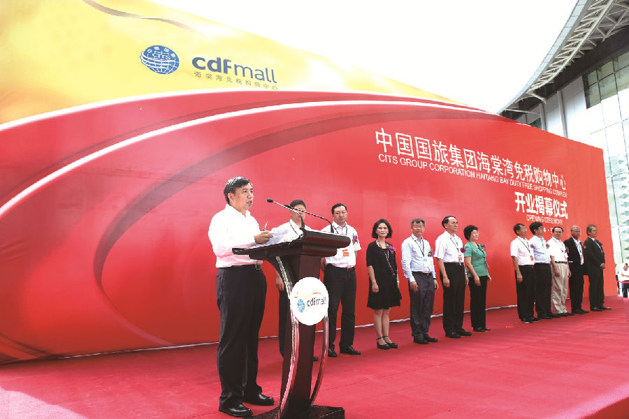 開(kāi)業(yè)儀式上,王為民發(fā)表了熱情洋溢的講話。他首先代表國(guó)旅集團(tuán)對(duì)各界的關(guān)心和支持表示衷心的感謝,隨后簡(jiǎn)要介紹了國(guó)旅集團(tuán)的基本情況、主要業(yè)務(wù)和今后發(fā)展方向。他回顧了海南離島免稅政策、三亞市內(nèi)免稅店發(fā)展歷程。2007年,國(guó)旅集團(tuán)提出“在海南開(kāi)展離島免稅購(gòu)物”的構(gòu)想,并配合海南省委省政府爭(zhēng)取離島免稅政策;2011年,中免三亞免稅店作為離島免稅業(yè)務(wù)試點(diǎn)啟動(dòng),極短時(shí)間內(nèi)便迅速成為海南省日均接待游客過(guò)萬(wàn)的旅游景點(diǎn)之一,至今已累計(jì)接待顧客1200多萬(wàn)人次?!奥糜渭用舛愘?gòu)物”已成為海南旅游的新名片。他向與會(huì)嘉賓介紹了海棠灣免稅購(gòu)物中心項(xiàng)目的特點(diǎn)和優(yōu)勢(shì),并表示項(xiàng)目的落成開(kāi)業(yè)將極大地釋放海南離島免稅政策紅利,助力海南國(guó)際旅游島建設(shè),也必將成為我國(guó)免稅業(yè)發(fā)展的里程碑。他說(shuō),海棠灣免稅購(gòu)物中心是全球最大的免稅商業(yè)綜合體,總面積達(dá)12萬(wàn)平米、集購(gòu)物、休閑、娛樂(lè)、餐飲等多功能于一身,具有國(guó)際先進(jìn)水準(zhǔn)、地標(biāo)性的建筑。它集合優(yōu)勢(shì)資源,招商引進(jìn)了300個(gè)全球頂級(jí)時(shí)尚品牌和精心準(zhǔn)備的超過(guò)10萬(wàn)個(gè)單品;其中有的是攜手合作伙伴,打造的最新、最時(shí)尚的概念店、全球最大和亞洲最大的品牌旗艦店。國(guó)旅集團(tuán)將以一流的品牌、一流的商品、一流的服務(wù)、一流的環(huán)境,為海南省、三亞市和來(lái)海南的廣大游客帶來(lái)持續(xù)不斷的驚喜和發(fā)現(xiàn)!展望未來(lái),國(guó)旅集團(tuán)將進(jìn)一步堅(jiān)定深耕海南旅游市場(chǎng)的信心和決心,通過(guò)積極整合旗下免稅、旅行社等多業(yè)務(wù)板塊資源,不斷發(fā)揮在資金、品牌資源、運(yùn)營(yíng)、管理等方面的優(yōu)勢(shì),利用海棠灣免稅購(gòu)物中心這個(gè)全新平臺(tái),積極推動(dòng)國(guó)際旅游島建設(shè),為廣大游客奉獻(xiàn)更為豐富多彩的旅游購(gòu)物體驗(yàn)。他堅(jiān)信,有社會(huì)各界的鼎力支持和關(guān)愛(ài),有全體員工的智慧和奉獻(xiàn),海棠灣免稅購(gòu)物中心一定會(huì)拿出驕人的業(yè)績(jī),成為國(guó)家海岸獨(dú)具魅力的亮麗風(fēng)景,為海南旅游業(yè)發(fā)展做出積極的貢獻(xiàn)!