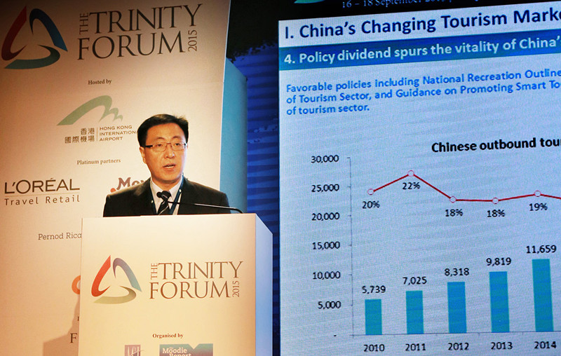 2015年9月16日至18日,受國(guó)際機(jī)場(chǎng)協(xié)會(huì)(ACI)及旅游零售行業(yè)權(quán)威媒體《穆迪報(bào)道》邀請(qǐng),由中國(guó)國(guó)旅股份有限公司副總經(jīng)理兼中免集團(tuán)董事長(zhǎng)、總經(jīng)理彭輝帶隊(duì),中免集團(tuán)副總經(jīng)理陳國(guó)強(qiáng)、王延光陪同參會(huì)的中免代表團(tuán),參加了在香港舉辦的三方論壇。今年三方論壇的主題是“三方共識(shí),以消費(fèi)者為核心”,吸引了包括世界機(jī)場(chǎng)、旅游零售商和品牌商在內(nèi)的300多家國(guó)際知名企業(yè)、400多名代表參與。