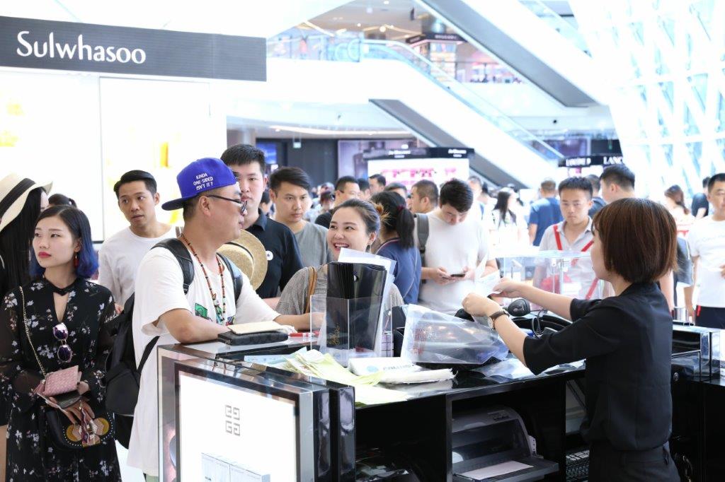 黃金周期間,免稅城舉辦了豐富多彩的營(yíng)銷活動(dòng)。10月1日-4日植村秀大中華首席彩妝師到店,現(xiàn)場(chǎng)免費(fèi)為顧客提供皮膚分析和彩妝體驗(yàn);10月4日-8日杜嘉班納邀請(qǐng)了來自意大利的美女畫師為顧客提供獨(dú)一無二的定制服務(wù);10月7日邂格蕾舉辦了專題浪漫舞會(huì)。各個(gè)活動(dòng)的互動(dòng)性強(qiáng),顧客參與其中,笑聲不斷。除了多樣的品牌營(yíng)銷活動(dòng),店內(nèi)購(gòu)物滿一萬元即可參加抽獎(jiǎng)的促銷活動(dòng)吸引了大批的顧客?!拔覀兪菑暮边^來的,在這買了好多化妝品,給家人也買了好多禮物,很滿意”一位來自湖北的顧客開心地說,”這里環(huán)境很高大上,品牌也比較全,活動(dòng)多,休閑購(gòu)物兩不誤,下次還會(huì)再來的?!?/p>