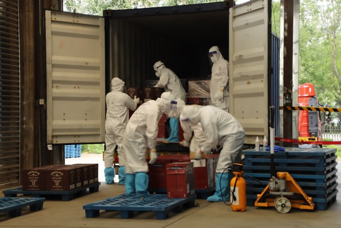 近日,又一批海運(yùn)集裝箱抵達(dá)物流基地。首都機(jī)場聯(lián)合黨支部成立的黨員先鋒隊配合執(zhí)行消殺卸貨工作。大家先對集裝箱進(jìn)行徹底無死角的全面消殺,隨后將貨物分批搬運(yùn)、拆箱,對貨物單個最小包裝物進(jìn)行逐一消殺,最后再統(tǒng)一裝箱。歷時5個小時,將全部貨物消殺完畢,為后續(xù)工作建立了第一道安全保障。