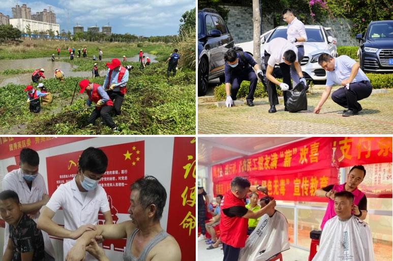 中免(海口)投資公司黨支部聚焦服務(wù)工程建設(shè)、豐富企業(yè)文化、踐行社會(huì)責(zé)任等方面把實(shí)事辦實(shí)辦好。為??趪H免稅城項(xiàng)目員工“送清涼”,購置了防暑防曬物資,備好冰鎮(zhèn)綠豆湯,不定期推出“驚喜菜”。精心打造“黨史文化墻”,設(shè)立“圖書角”,開展“微課堂”讀書活動(dòng),為員工訂閱報(bào)紙期刊,開展職工趣味運(yùn)動(dòng)會(huì)、友誼籃球賽,全面更新公司形象展示標(biāo)識(shí)和宣傳欄,設(shè)置新人榜,不斷打造企業(yè)文化新亮點(diǎn)。黨支部聯(lián)合當(dāng)?shù)毓?huì)、共青團(tuán)等機(jī)構(gòu)共同開展環(huán)保志愿活動(dòng)和公益普法活動(dòng),提供免費(fèi)體檢、義剪服務(wù),以實(shí)際行動(dòng)關(guān)愛自貿(mào)港基層建設(shè)者,彰顯央企風(fēng)范。