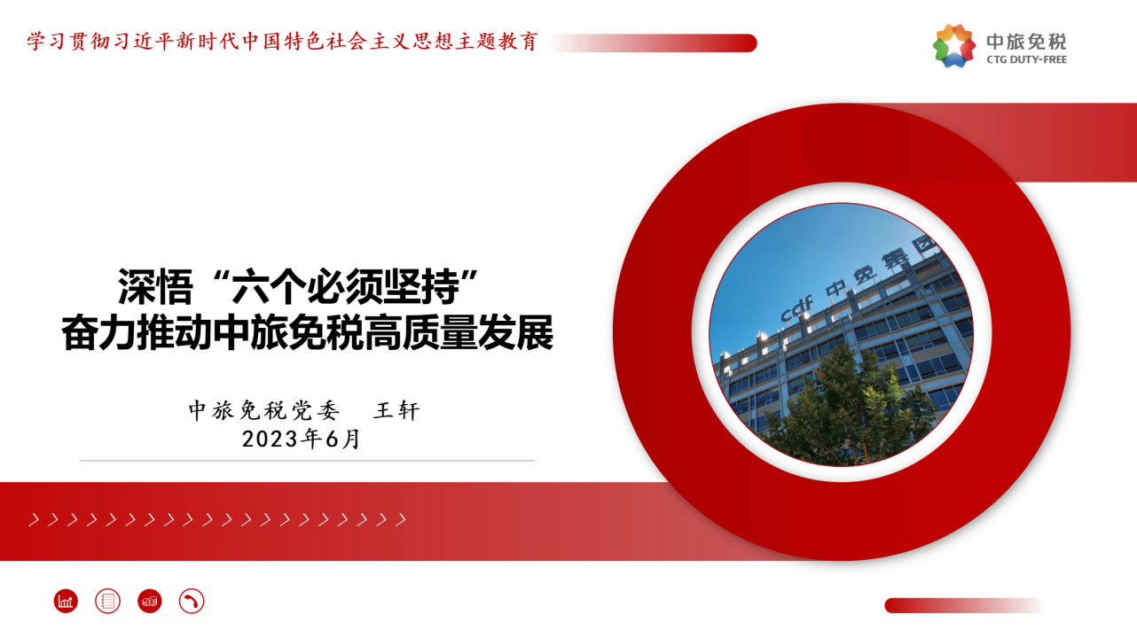 一是筑牢理想信念,昂首奮進新的征程。要堅決貫徹落實總書記指示,優(yōu)化發(fā)展方式,注重發(fā)展品質(zhì),追求質(zhì)量更優(yōu)、效益更好、效率更高的可持續(xù)增長,做強做優(yōu)公司核心競爭優(yōu)勢,全面提升公司經(jīng)營發(fā)展的系統(tǒng)能力。二是增強憂患意識,持續(xù)堅定斗爭意志。要進一步強化危機意識、憂患意識,主動擔責、主動擔難、主動擔險,以強烈的使命感和責任感,統(tǒng)一思想、統(tǒng)一意志、統(tǒng)一行動。三是汲取精神力量,不斷取得新的業(yè)績。要以“紅色引擎 免稅先鋒”“海棠精神”“紅帆工程”等黨建品牌活動為切入點,進一步提升基層黨組織的組織力,通過共建活動平臺、分享工作資源、交流工作經(jīng)驗、解決實際問題等途徑,實現(xiàn)黨的建設與業(yè)務發(fā)展建設良性互動,以深入推進全面從嚴治黨引領保障高質(zhì)量發(fā)展。四是強化底線思維,防范化解重大風險。要深刻領會習近平總書記關于強化底線思維,防范化解重大風險的重要論述,充分認清當前面臨的形勢任務,系統(tǒng)梳理查找存在的突出風險問題,自覺從習近平新時代中國特色社會主義思想中找到破解矛盾問題的鑰匙,努力在新思想指引下探索推動高質(zhì)量發(fā)展的路徑。五是堅持自我革命,系好廉潔的“安全帶”。要繼續(xù)發(fā)揚自我革命精神,縱深推進黨風廉政建設和反腐敗斗爭,一體推進“不敢腐、不能腐、不想腐”,圍繞財經(jīng)領域專項整治等重點問題、緊盯海南地區(qū)所屬的重點企業(yè)和重點項目,以及防范離島免稅“套代購”、傳統(tǒng)渠道免稅店經(jīng)營風險等重點領域和巡視整改等重點工作,深化標本兼治、系統(tǒng)治理,以新時代廉潔文化建設,涵養(yǎng)求真務實、團結奮斗的中免風貌。