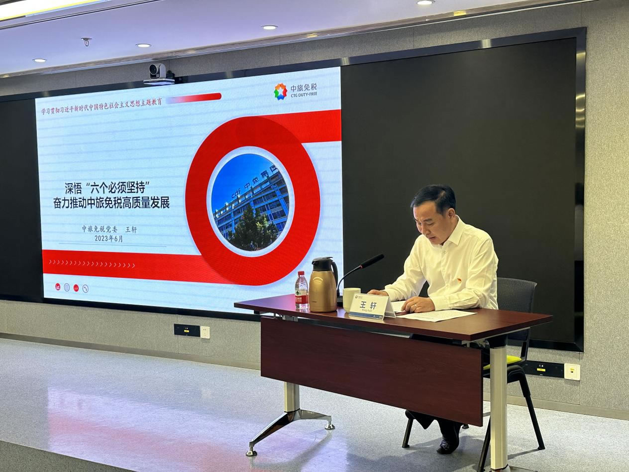 為貫徹落實習近平總書記提出的“領導干部要上講臺、講黨課,以身作則、以講促學”的政治要求,按照黨中央關于主題教育部署要求和集團黨委工作安排,6月25日上午,中旅免稅黨委書記、總經(jīng)理、主題教育領導小組組長王軒同志以《深悟“六個必須堅持”奮力推動中旅免稅高質(zhì)量發(fā)展》為題,講授學習貫徹習近平新時代中國特色社會主義思想主題教育專題黨課。中旅免稅黨委委員、副總經(jīng)理王延光主持。集團主題教育第一巡回指導組成員楊翠華、李征、劉展愷線上列席指導。