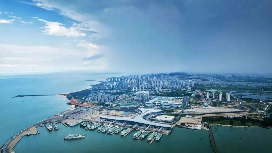 建設(shè)免稅城,見攝自貿(mào)港——天地因雨相連
