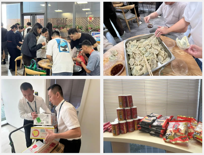 “開(kāi)飯啦,大伙快來(lái)嘗一嘗!這里有現(xiàn)包的白菜肉、酸菜肉、韭菜肉、香菇肉的餃子;黑芝麻湯圓和花生餡湯圓在那邊??纯聪氤允裁??!睙狒[的茶水間人聲鼎沸,大家排隊(duì)打完餐后圍坐在圓桌前開(kāi)始享用美食。春節(jié)期間,中免鳳凰機(jī)場(chǎng)店里年味十足,六樓辦公區(qū)保障餃子和湯圓,機(jī)場(chǎng)隔離區(qū)休息室還擺放了零食供職工們隨時(shí)補(bǔ)充能量,讓職工在堅(jiān)守的同時(shí)感受來(lái)自公司的濃濃關(guān)愛(ài)和“家”的溫暖。