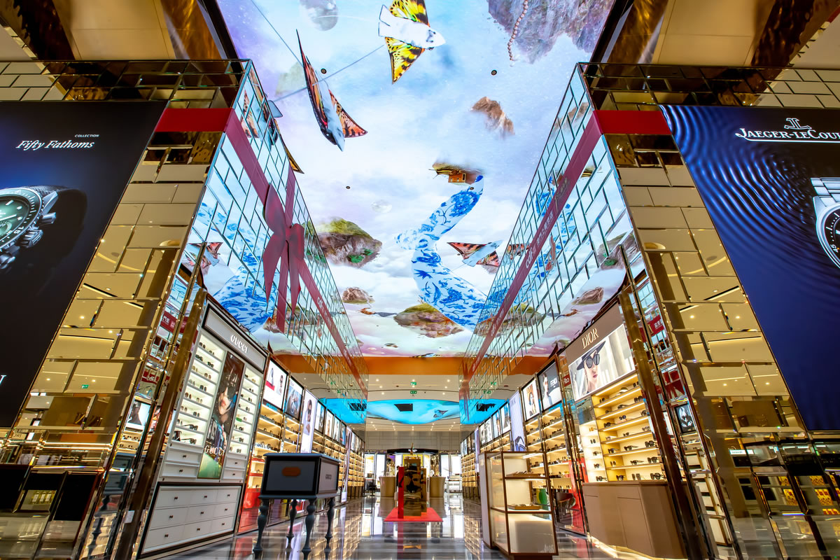 澳門全新購物天堂,超越界限,一站品蘊(yùn)全球。作為中免集團(tuán)首家澳門市內(nèi)旗艦店,cdf澳門上葡京店秉承中免集團(tuán)“分享購物的快樂,延伸旅游的享受”的企業(yè)使命,打造澳門全新購物天堂,為廣大游客提供頂級奢華的購物體驗(yàn)。門店占地約 7500 平方米,以度假村中的超現(xiàn)實(shí)島嶼”,夢幻、不可預(yù)測、可視化、富有藝術(shù)感,融匯光影反射的抽象形態(tài),融合復(fù)古與未來的設(shè)計(jì)風(fēng)格,打造出在夢幻島嶼的氛圍,為客人提供全新的感官享受,探索新模式購物的無限可能。