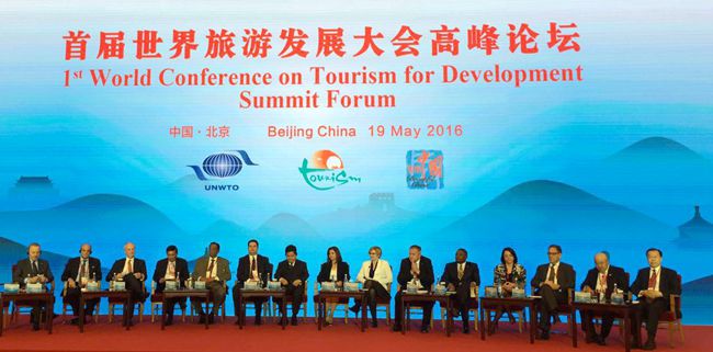 由中國政府和聯(lián)合國世界旅遊組織共同主辦的首屆世界旅遊發(fā)展大會于5月19日在北京開幕。全球107個國家、600名外國代表以及國內(nèi)有關(guān)部委、各省區(qū)市有關(guān)負(fù)責(zé)人,旅遊研究機(jī)構(gòu)及院校、大型旅遊企業(yè)負(fù)責(zé)人近千人齊聚北京,共商世界旅遊業(yè)發(fā)展大計(jì)。本次大會以「旅遊促進(jìn)發(fā)展與和平」?fàn)?wèi)主題,舉辦了開幕式、主旨演講、高峰論壇、二十國集團(tuán)旅遊部長會議等活動。