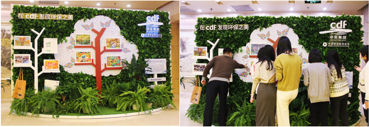 近日,在中免集團(tuán)總部及三亞國際免稅城、??谌赵聫V場免稅店、??诿捞m機(jī)場免稅店舉行了“在cdf發(fā)現(xiàn)環(huán)保之美”環(huán)?;踊顒?,活動現(xiàn)場展示了《2021中免集團(tuán)環(huán)保綠皮書》、優(yōu)秀環(huán)保海報設(shè)計作品,并與消費者互動在環(huán)保樹上留下環(huán)保印記,領(lǐng)取定制環(huán)保手提袋、環(huán)保臺歷等紀(jì)念品。